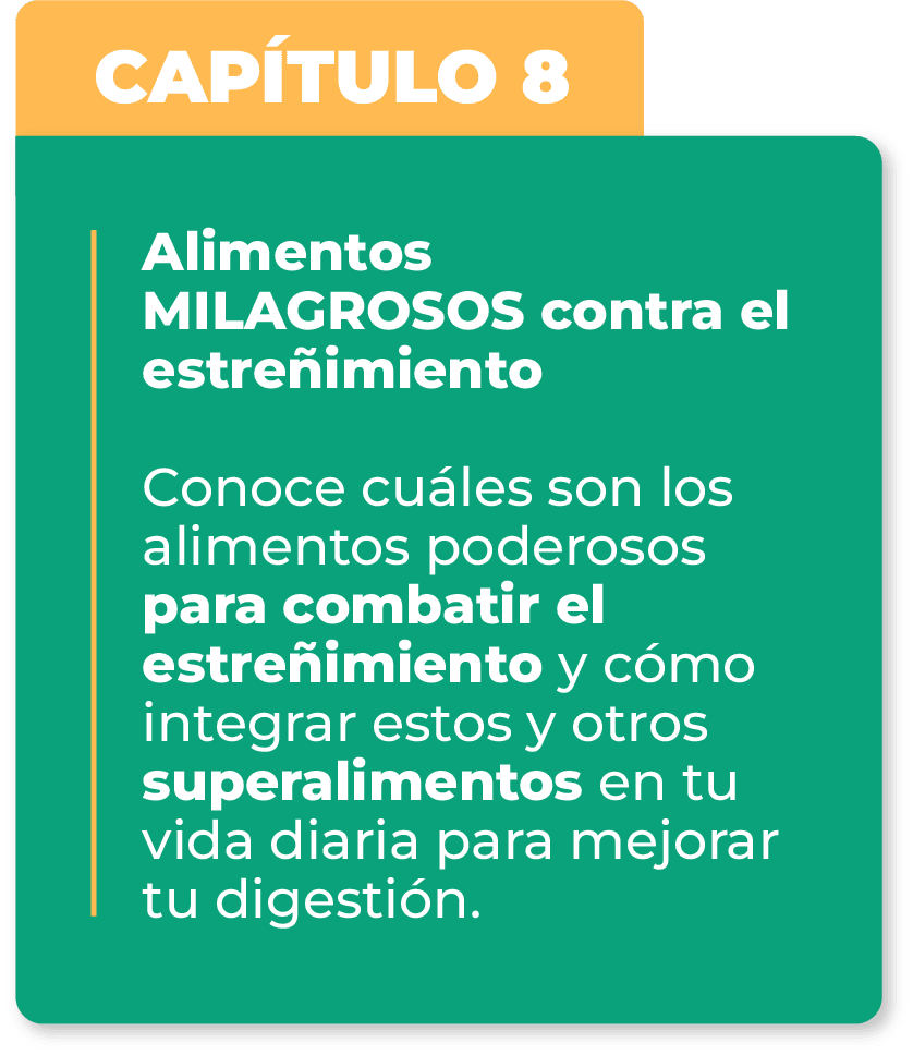 • ​Capítulo 8: Los mejores alimentos para combatir el estreñimiento. Valorado en $57