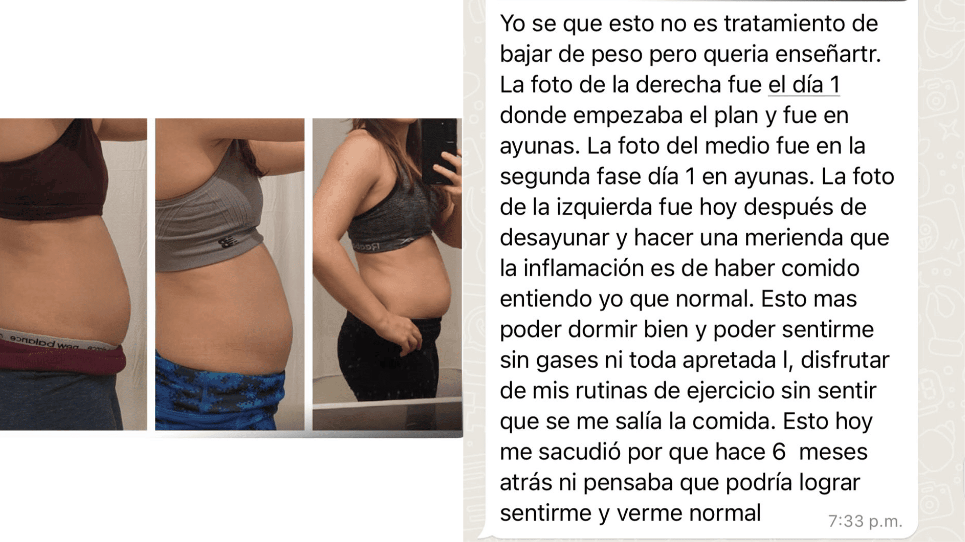 En 6 años trabajando con trastornos de salud digestiva he visto pasar a mis pacientes por diferentes situaciones y desafíos y no te voy a mentir sé que es difícil de creer que puedes superar el estreñimiento sin dieta, ni depender de un especialista y mucho menos tener que invertir un montón de dinero, pero lo que descubrí y estoy a punto de mostrarte es simplemente es UN ANTES Y UN DESPUÉS...