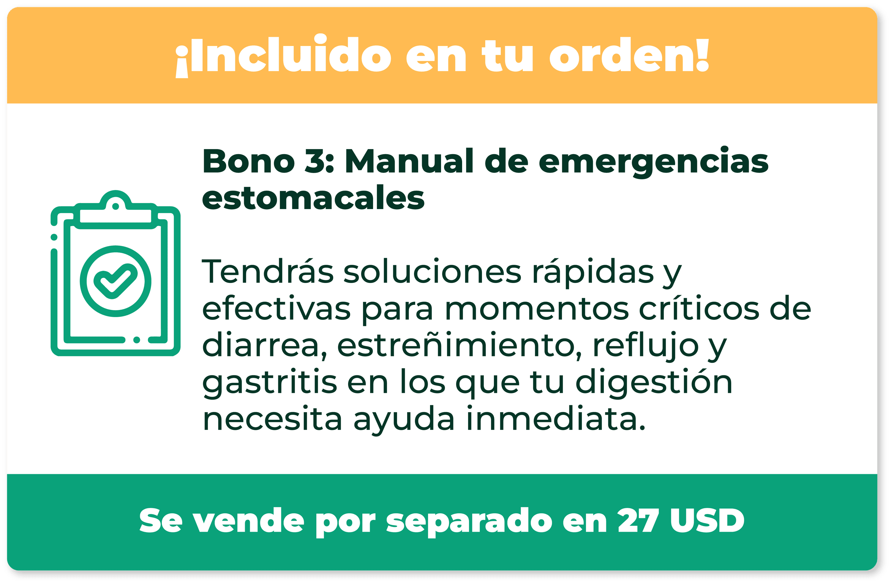 • BONO #3: Manual de emergencias para la digestión  Valorado en $27